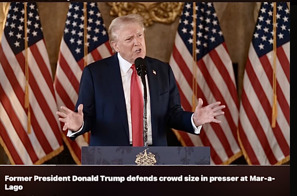 Trump’s often incoherent and untrue remarks in the press event lasted over an hour. Later fact checkers noted numerous falsehoods. This crowd size prevarication is typical, and easily exposed.