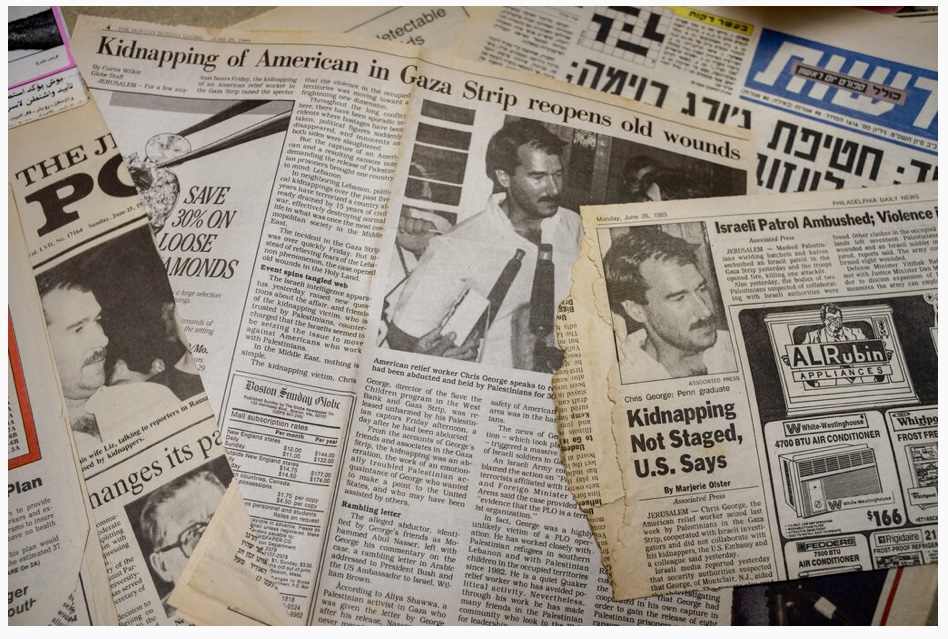 Old newspaper clippings about Chris George’s 1989 kidnapping in Gaza.