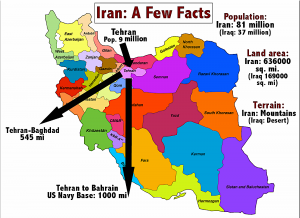 4. Iran’s land mass is also 3.5 times bigger than Iraq, with lots of mountains; (Iraq is mostly desert)