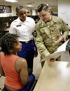 In small sessions with members of the Reserve Officers’ Training Corps (ROTC) and the junior ROTC, students laid bare the gaps the Army must bridge to attract others in their generation. They said young people don’t know the benefits offered by Army service, which include a wide array of career choices or free college tuition. They said students have little exposure to service members and that for every positive mention of the military or the Army online, there are five negative ones.
