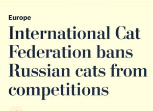 The federation, which considers itself “the United Nations of Cat Federations,” said in a statement that it was “shocked and horrified” that Russian forces had invaded Ukraine and “started a war.” Known as FIFe (for its French name, Fédération Internationale Féline), it said that the measures were decided Tuesday and that officials could not “witness these atrocities and do nothing.”