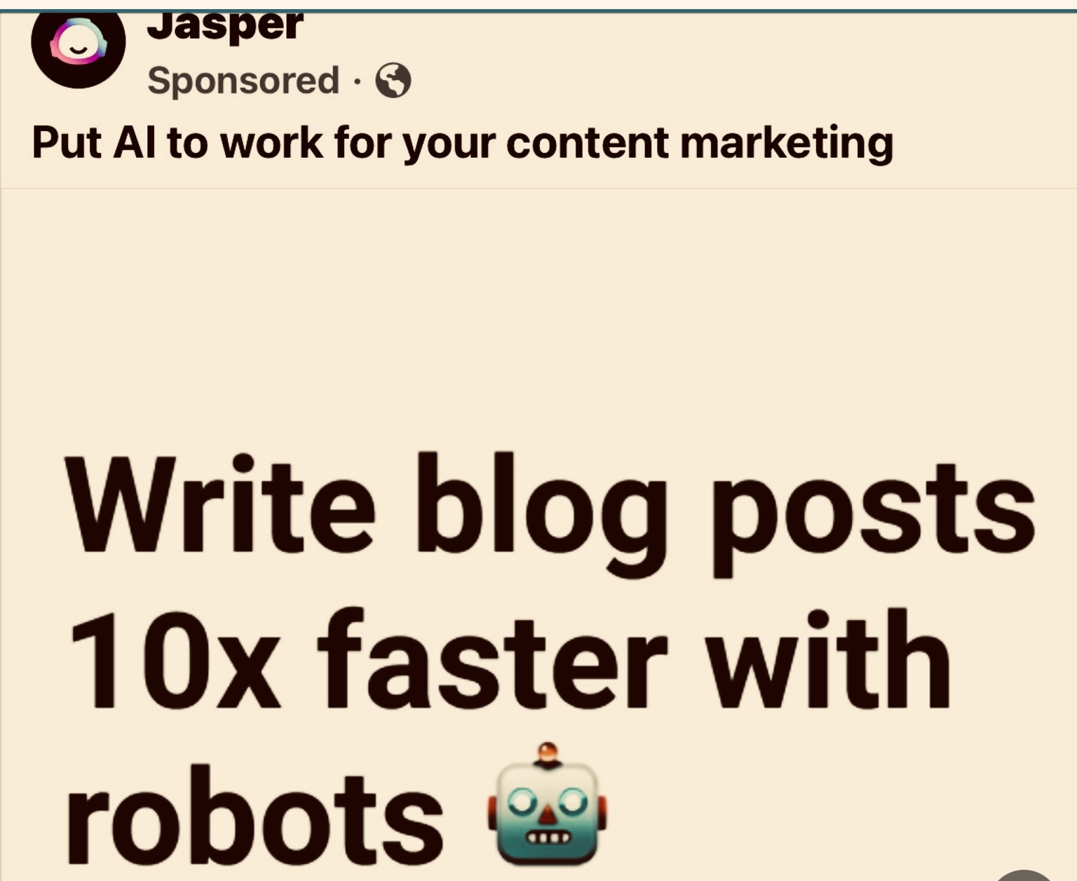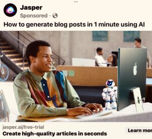 [NOTE: Ads with cutesy robots, named “Jasper,” for AI software that reputedly will write my blog posts ten times faster, are popping up on my Facebook page practically every day.