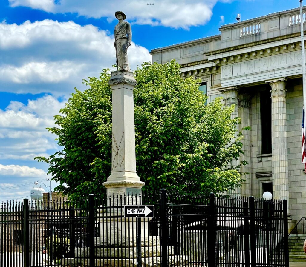The county’s monument to local Confederate war dead is a statue of a soldier atop a pillar about 30 feet above the street. It has been on Court Square since 1914 in front of what is now the only public entrance to the Alamance County Historic Courthouse. It’s been the focus of demonstrations for and against it for years, but the summer and fall of 2020, after the killing of George Floyd in 2020, became nothing short of intense.