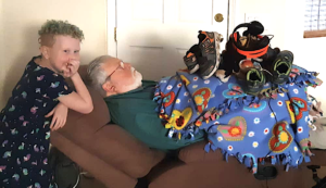 What happens in Vegas–piling on a napping Grandpa February 2020. Happy anniversary?
