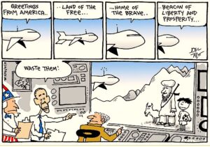 –While the bulk of these covert attacks take place in Afghanistan, there are also targets in Pakistan, Iraq, Iran, and many other countries, which receive almost no attention. The previous administration declared that the “battlefield” in the “war on terror,” was the whole world; the targets could be anyone. The current administration has shelved the “war on terror” meme, but retained the unlimited reach of its “righteous” violence.