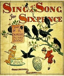 Sing a song of sixpence, A pocket full of rye; Four and twenty blackbirds, Baked in a pie. When the pie was opened, The birds began to sing; Wasn’t that dainty dish To set before the king?
