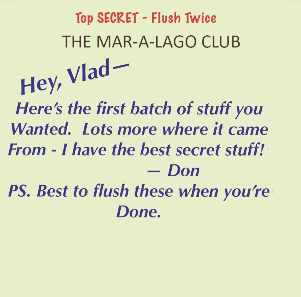 Imagine the Feds this past Monday morning, search warrant in a back pocket, sweating in their suits and ties, but with rubber gloves up to the elbows, hands thrust deep in each of the Mar’s 477 (gold-plated?) toilets, searching fearlessly, searching relentlessly, thanking god no selfies were allowed, and no alligators have been seen nearby for a couple of weeks.