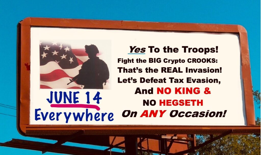This “billboard” is meant to be the first of a series in the runup to the June 14 “NO KINGS” protests.