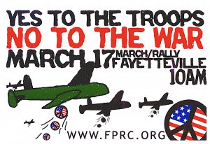 Peace folks’ morale plummeted as quickly. We felt this in spades in mid-March, when it came time for our fourth annual peace rally in Fayetteville, to mark the launching of the Iraq invasion.
