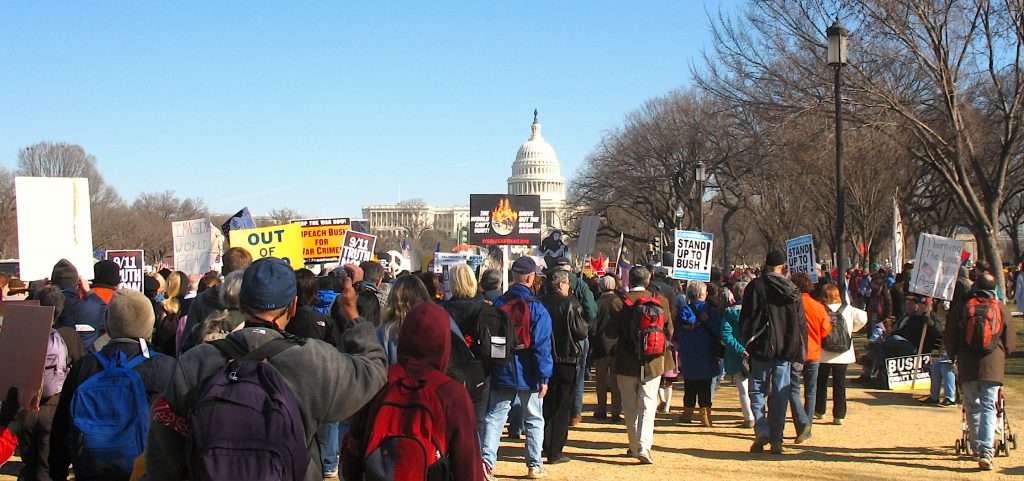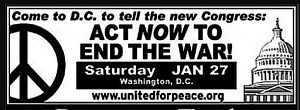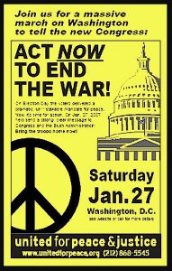 The 2007 rally was organized by “United for Peace & Justice”, or UFPJ, a lefty umbrella coalition. UFPJ had organized some of the biggest U.S. rallies of those years. January 2007 was UFPJ’s last stand too.