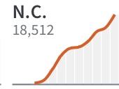 This graph, from Reuters, shows the steady, rapid rise of virus cases in the state, as of Mid-May. The total has continued rapidly upward since then. Unlike some other states, NC a peak or leveling off is not yet in sight here.