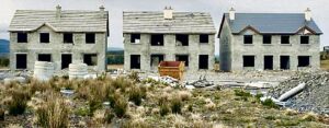 The train rides delivered the closeup look: but what jumped out from the stubbornly green winter landscape were long rows of new houses: empty, abandoned, many only half-built, their roofless walls open to the cruel Atlantic winds.