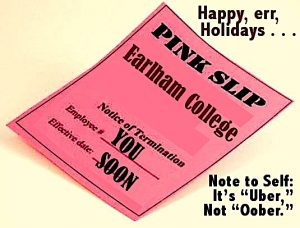 By college regulations, the bad news must be delivered, preferably in person, by New Years Eve. (The plan was announced in an email letter from the Board on Friday Dec. 21, which was also the Winter Solstice. The staff cuts will be made official by February 15; rumors that this date was chosen to spoil Valentine’s Day as well were unconfirmed.)