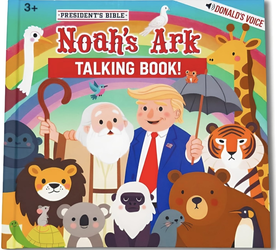This product is from a small business brand. Support small. Learn moreHEAR TRUMP’S VOICE NARRATE NOAH’S ARK: Children will be delighted as they press the interactive sound buttons on each vibrant page to hear Donald Trump’s distinctive voice tell this biblical story. Through the magic of AI technology, we’ve created a unique children’s book experience with biblical teachings.