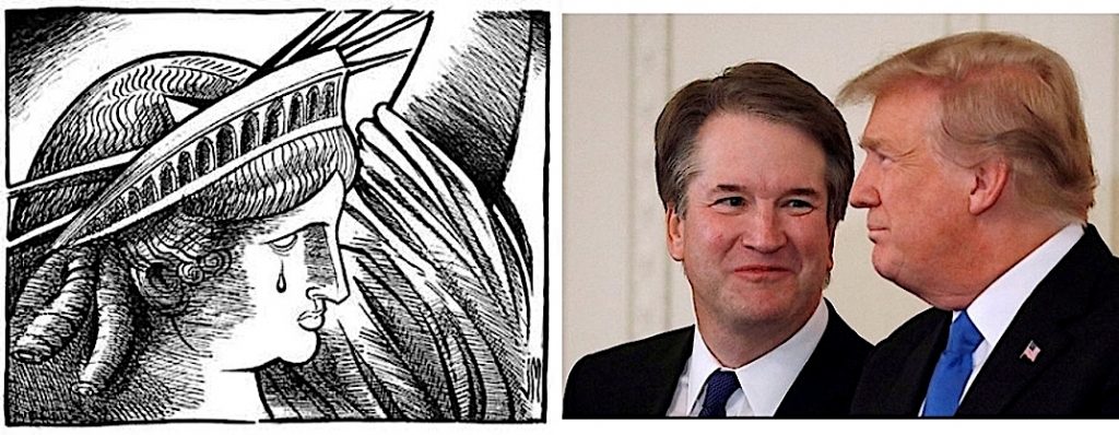 While these cases are all above my pay grade, after several hours of this, even I could begin to discern what Whitehouse had called the key patterns in K‘s thought and decisions. These became more evident when the Dems’ outside witnesses finally alined up on Friday and took their turns at the mike. They included lawyers and professors, plus Parkland survivors, the head of the Congressional Black Caucus, and persons with chronic diseases for whom Obamacare is a matter of life or death. About the only ones missing were detainees at Gitmo, but they had other commitments.