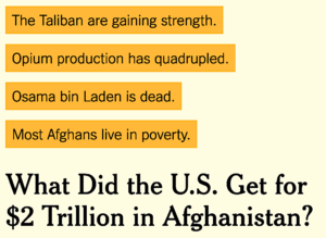 But it was also reasonable to fear from the start that trying to graft a Western political culture onto such a deeply tribalized, male-dominated and Islamic fundamentalist culture like Afghanistan’s was a fool’s errand, especially when you factored in how much neighboring Pakistan never wanted us to succeed because it could wrench Afghanistan from Pakistan’s cultural and geopolitical orbit. . . .”