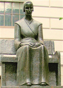 Mary Dyer’s witness is even carved in stone, with a statue of her seated on a plain Quaker bench, keeping quiet watch next to the Massachusetts statehouse on Boston’s Beacon Hill.
