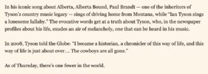 “He put a lot of time and energy into his songwriting and felt his material very strongly, especially the whole cowboy lifestyle,″ Sylvia Tyson said of her former husband.
