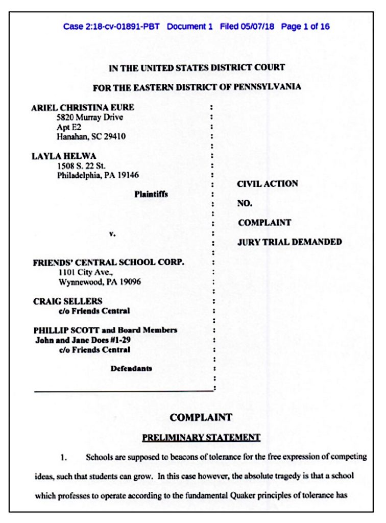 Ariel Christina Eure and Layla Helwa vs. Friends’ Central School Corp. Craig Sellers, Phillip Scott and John Doe and Jane Doe #’s 1-29
