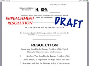 A draft article of impeachment to remove Trump for inciting insurrection is being circulated among members of Congress.