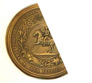 Part of the great seal of the Confederacy. The motto, “Deo Vindice,” means: “God will vindicate us.” Some still believe it.