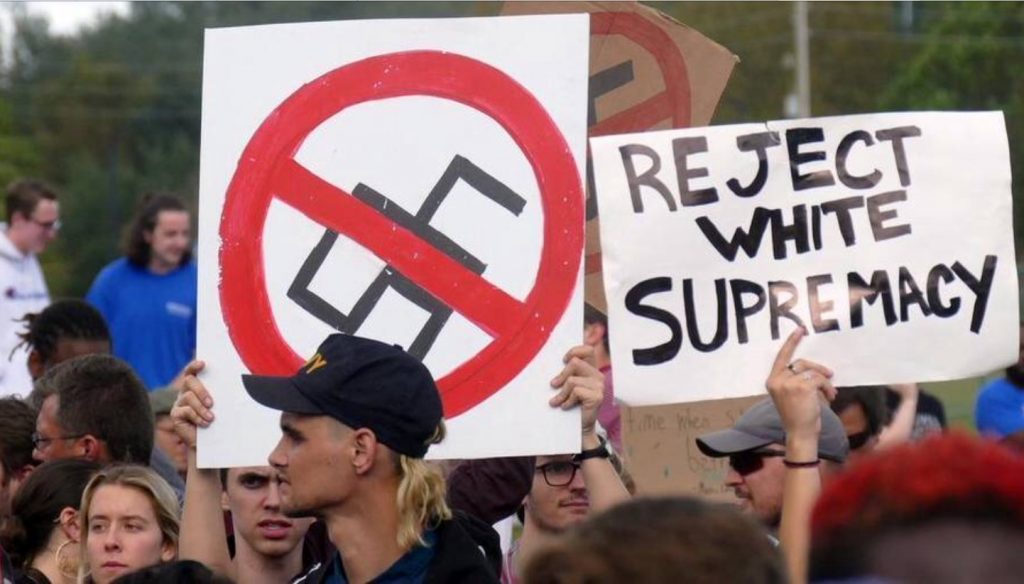 The majority of the crowd, which alternatively chanted “F–k Nazis, go home,” and “Whose streets? Our streets,” strongly spoke out against the idea of violence.