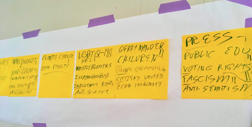 The Consultation was not aimed at producing resolutions or a new organization, but to assist in encouraging and facilitating cooperation for continued resistance. Encouragement also seemed in plentiful supply, and we closed with some music, from Scott Holmes, who doubles as an aggressive lawyer fighting mass incarceration when he’s not writing songs. He’d written a new resistance song just for us.