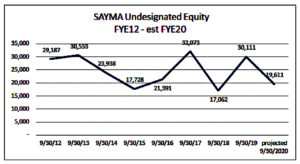 This graph has not been updated on the SAYMA site as of this writing. But at that point the “undesignated equity” funds were expected to be less than $20,000 by summer. And since then –the updated Treasurer’s report shows that a deficit persists, as the broader recession deepens.