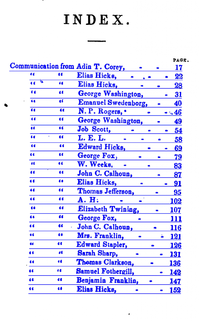 Included below are two excerpts from Post’s book, Voices From the Spirit World, “messages” purportedly from Edward Hicks and George Fox.  (The full text of Voices is online here, free of charge.)