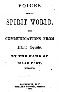 Isaac soon became a “writing medium” himself, and in 1852 produced a  book, a collection of “messages” from various “spirits.”