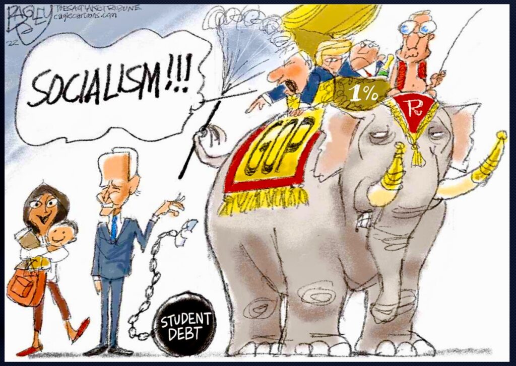But what really got my attention is how Stefani McDade and her CT editors let the Cato Christian get away with a bald-faced lie that comes directly from the Republican playbook. This is the canard, unsubstantiated anywhere, that relieving student debt represents a regressive upwardredistribution of wealth, with uncredentialed working people subsidizing the college-educated elite.
