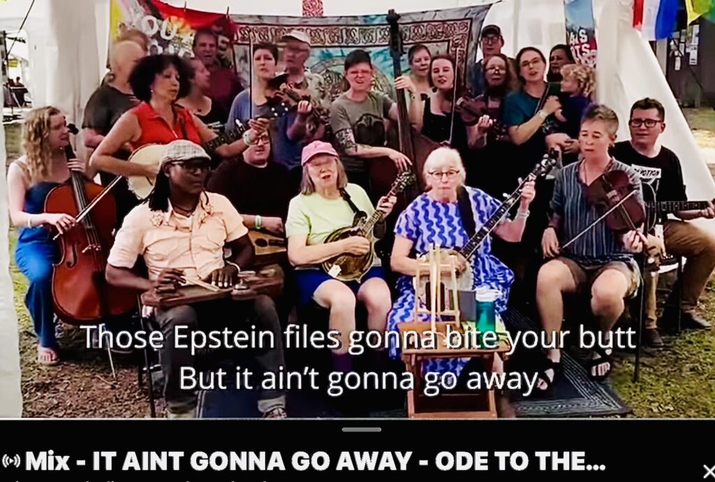 I knew of one. It appeared in my Facebook feed unannounced a couple months ago. Cathy Fink, Marcy Marxer and a 20-person string band & chorus came together with an instant earworm on one of the season’s persisting themes: