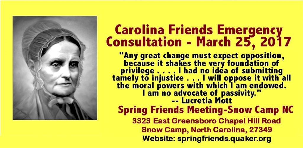 The Carolina Friends Emergency Consultation – March 25, 2017