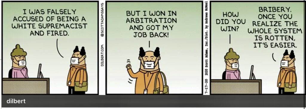 Oh, and the arbitrator is selected–and paid for-by the company that is on the other side of the table. But other than all that, arbitration is just like court!