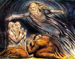 Again, take Job. At the end of his trials, after he has rejected his friends’ rationalizations and demanded an accounting from God, as to the meaning and injustice of what has happened to him, — finally God responds, and speaks to him out of the whirlwind. (It’s more like a tornado that suddenly touches down in front of his dung heap.)