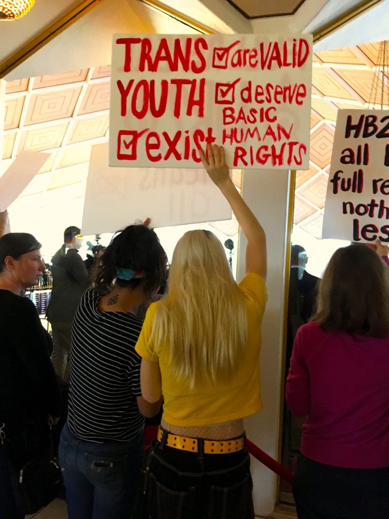 Dickson urged Sanders to hear from trans youth and those who care from them before signing any more bills affecting the LGBTQ community.