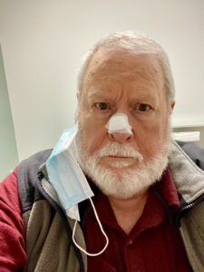 But it was a slow day in Mohs-ville, and the doc was very quick; I was sliced, diced, certified cancer-free, and free to go home with my new nose cap in two hours time.
