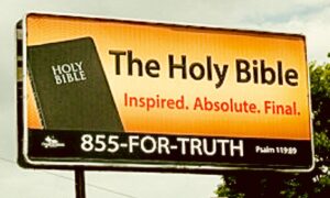 NOTE: NOT a liberal Quaker billboard . . . (If half the hands went up, that was a lot.)