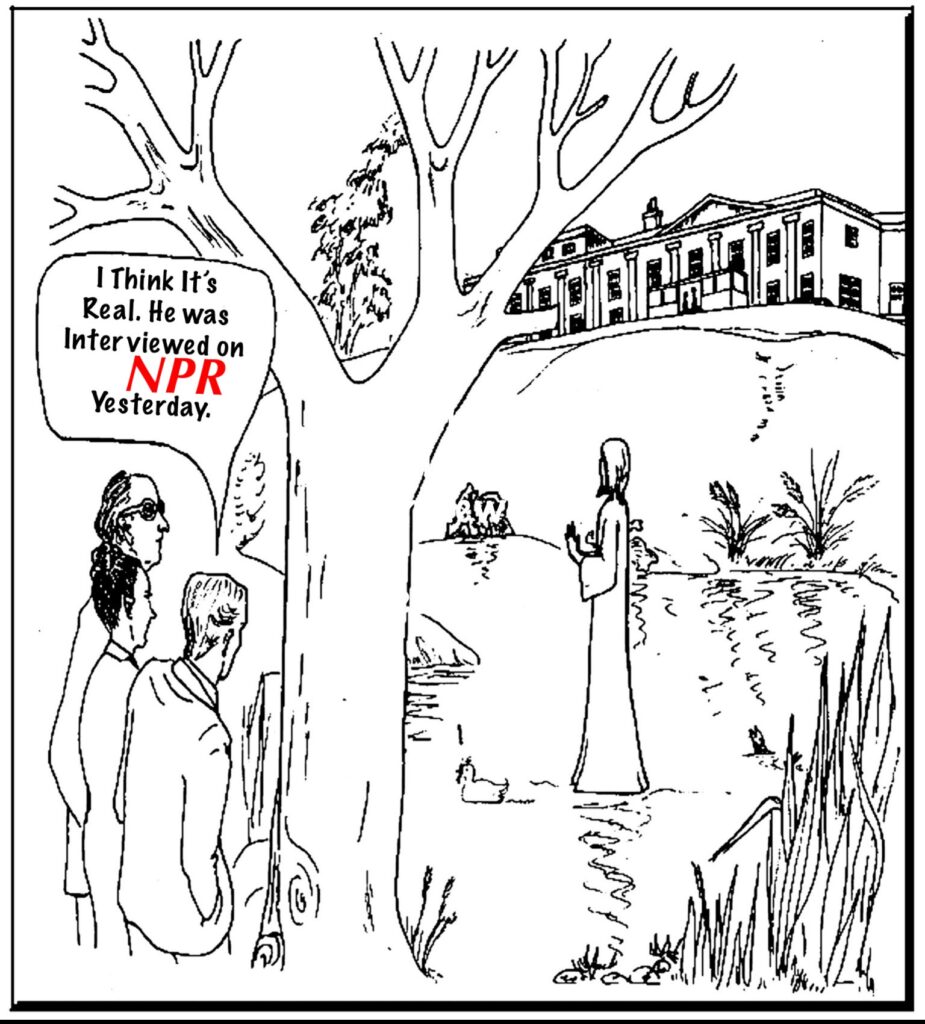 In all this to-ing and fro-ing, I had come to realize that, from coast to coast, border to border, my “faith community’s” connective tissue, what it essentially breathed and fed on — was a media monoculture, like guppies in a fishbowl. The cultural medium in which we lived, moved, and had our “spiritual” being, was —NPR.